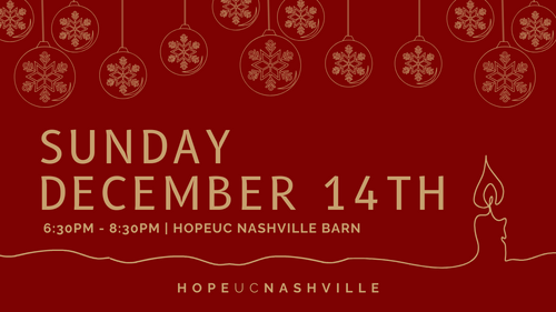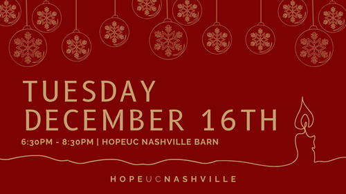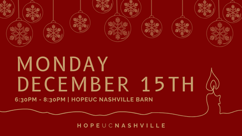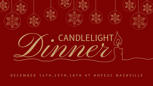 It's that time of year again! Join us for a beautiful Candlelight Dinner with our HopeUC Nashville family. We are excited to announce that this year we will be hosting three evenings so that we can celebrate at our very own Homestead Manor. Both nights will follow the same program with a delicious dinner, music, the Christmas Story, and so much more! This is an event that we look forward to every single year and we'd be so thrilled to have you join us. Click on the date below that works for you and your family!