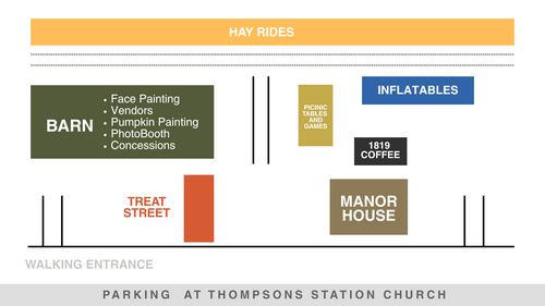 HM PARKING LOT: - Treat Street (Trunk or Treat) EVENT BARN: - Vendors - Concessions - Face Painting - Photobooth - Pumpkin Painting SIDE YARD: - Inflatables - Games - Picnic Tables BACK PROPERTY: - Hay Rides 1819 COFFEE/MANOR HOUSE: - Lattes, Apple Cider, and so much more (Closes 8pm)